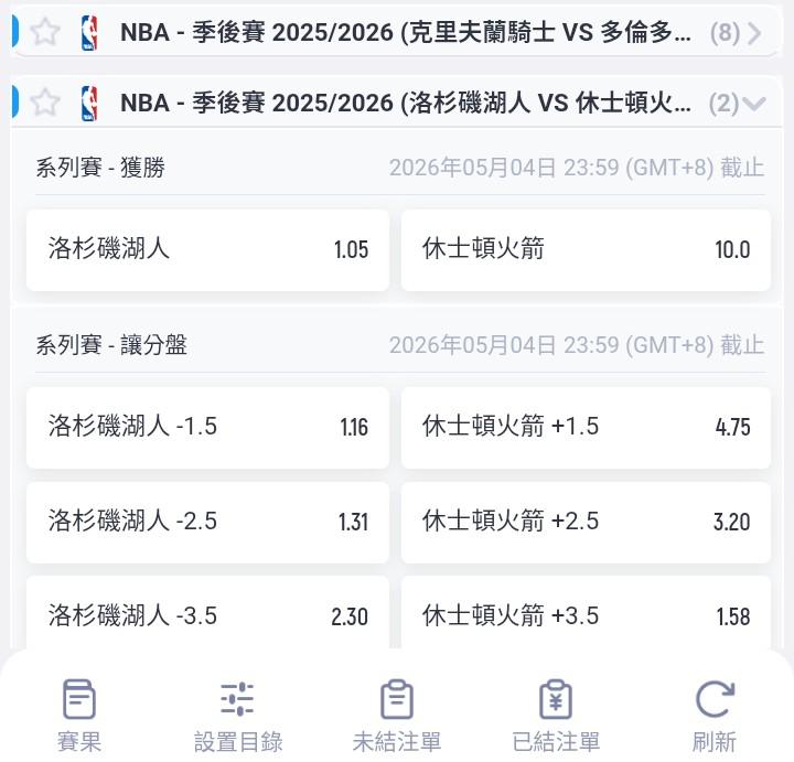 NBA >> 湖人晉級還敢開盤耶 0.05倍?