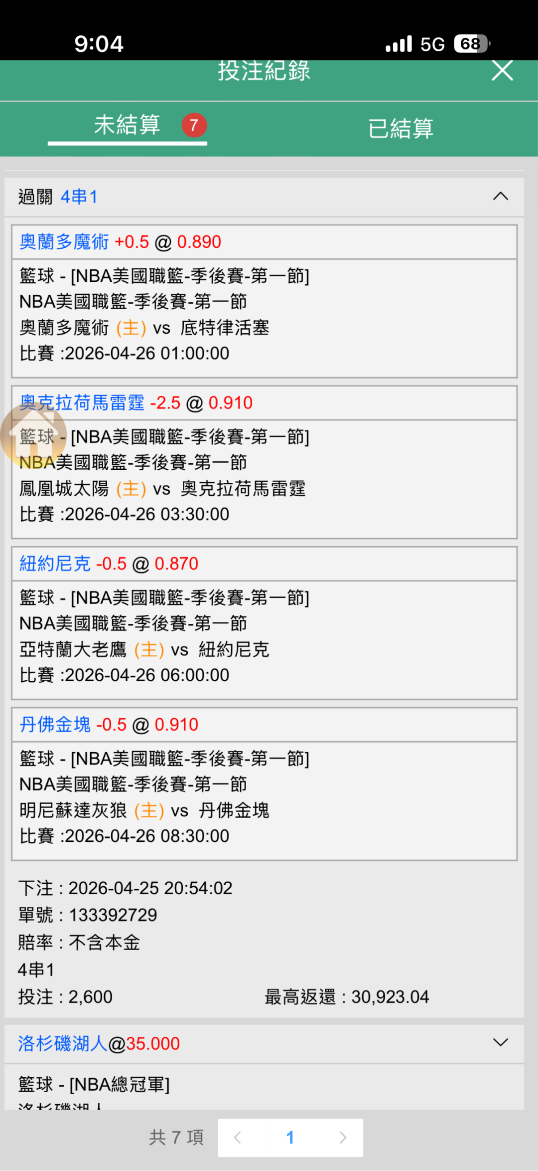 上半場如果灰狼小贏或平手,全場金塊大勝!哈哈!劇本就完美了!這樣子走地的可以咬死持續追狼的風…..