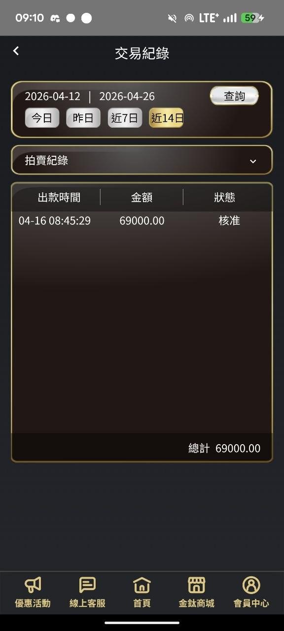這兩週紀錄(最多只能抓14天) ,我的出金紀錄