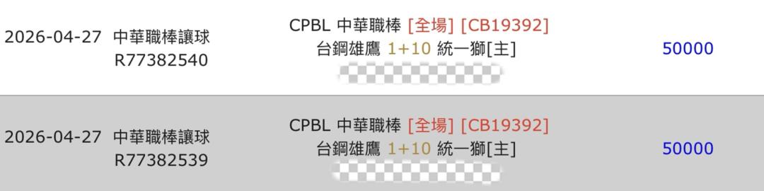 >> 中華職棒「釘孤枝 新台幣 10萬」台鋼雄鷹 VS 統一獅,主推近12場過9場,豪爽爽爽