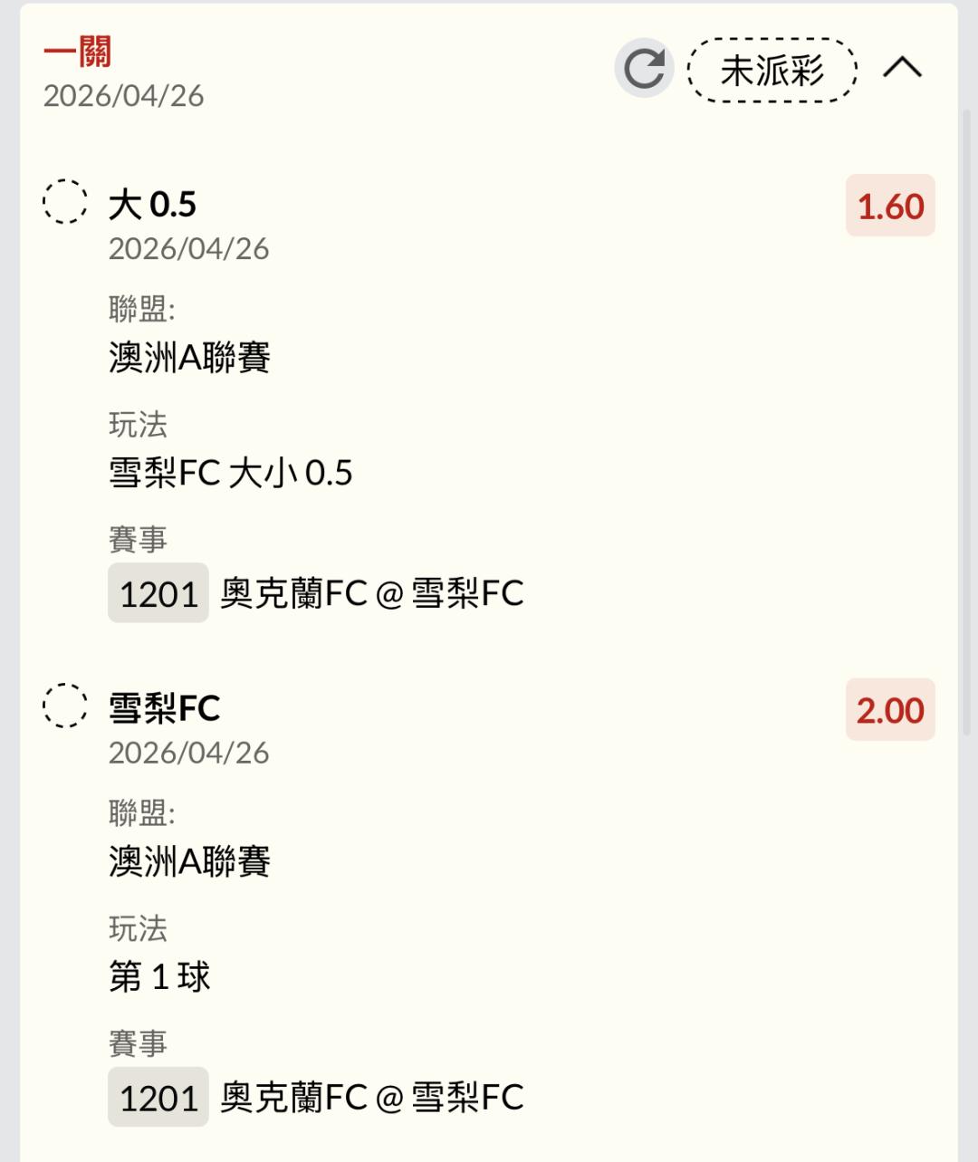 足球 >> 澳A 13:00單場
