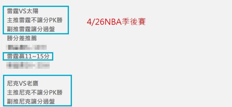 NBA >> 4/27NBA運彩主推連過5天 今天推薦2場季後賽:雷霆讓分+贏12分&尼克PK+讓分都抓到 特價