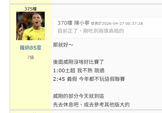 足球 >> 4/26 滾球+威剛單場~