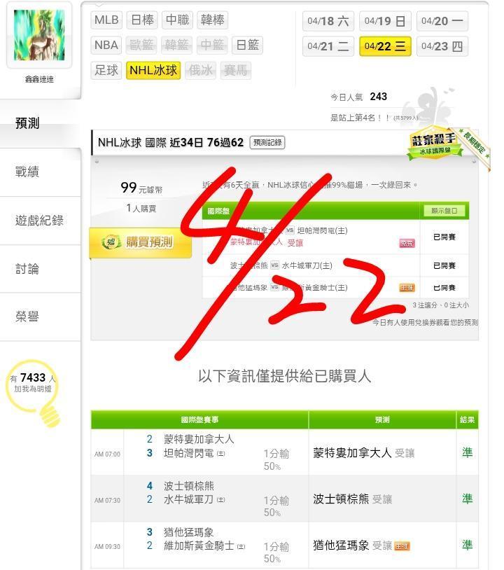 >> ⭐⭐NHL冰球國際近38日86過67,主推信心場次