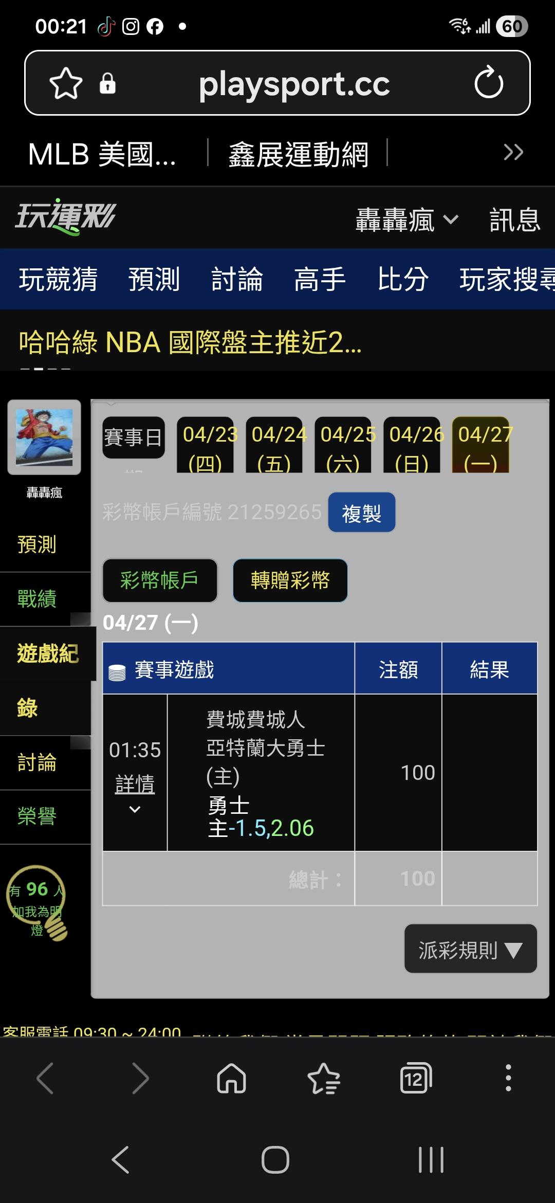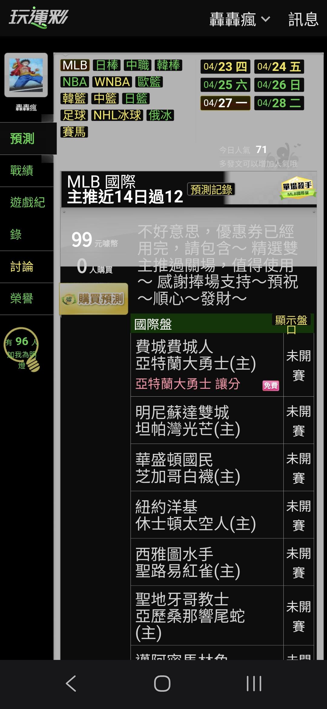 >> 推薦>>(費城人/勇士)場。(勇士)1-50。順利過關。