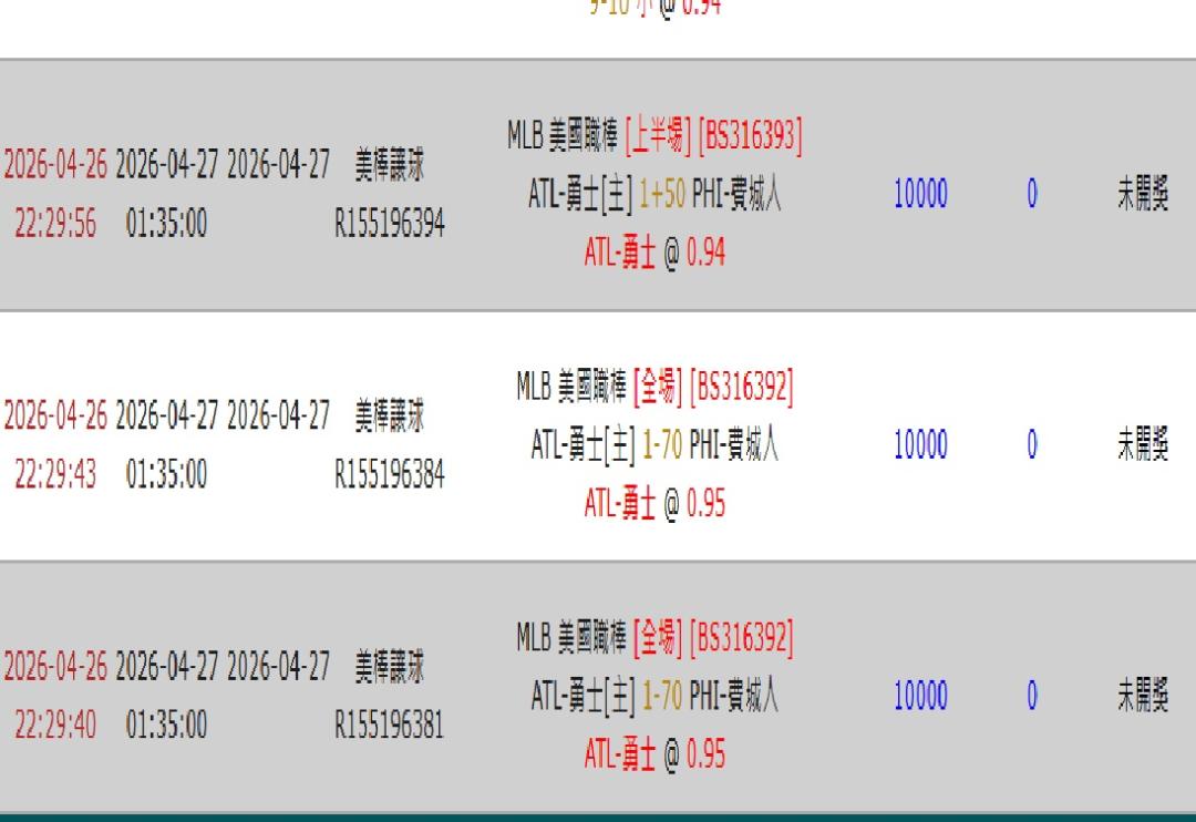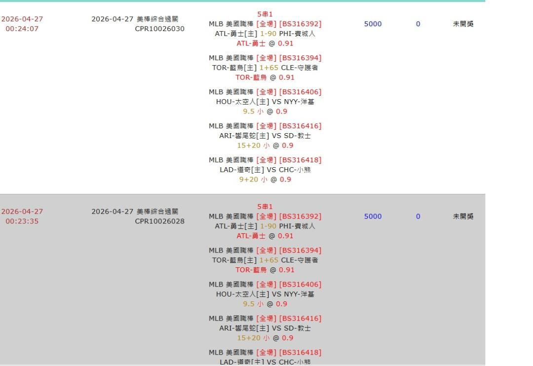 >> #4/27MLB 五串一 秀單 勇士重注