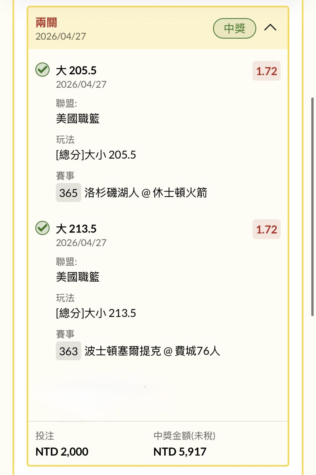 >> NBA 4/27 串二 全過!