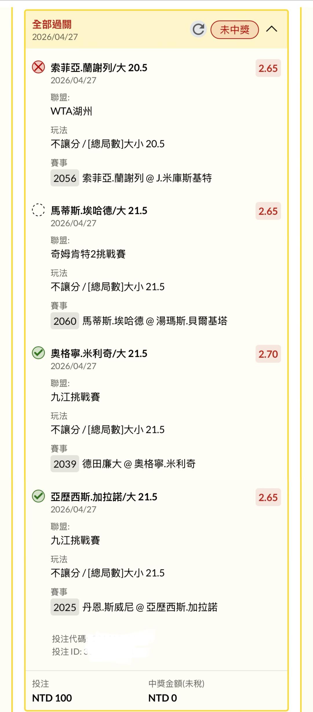 最後一關6:3第二盤4:4打到6:6有機會大21