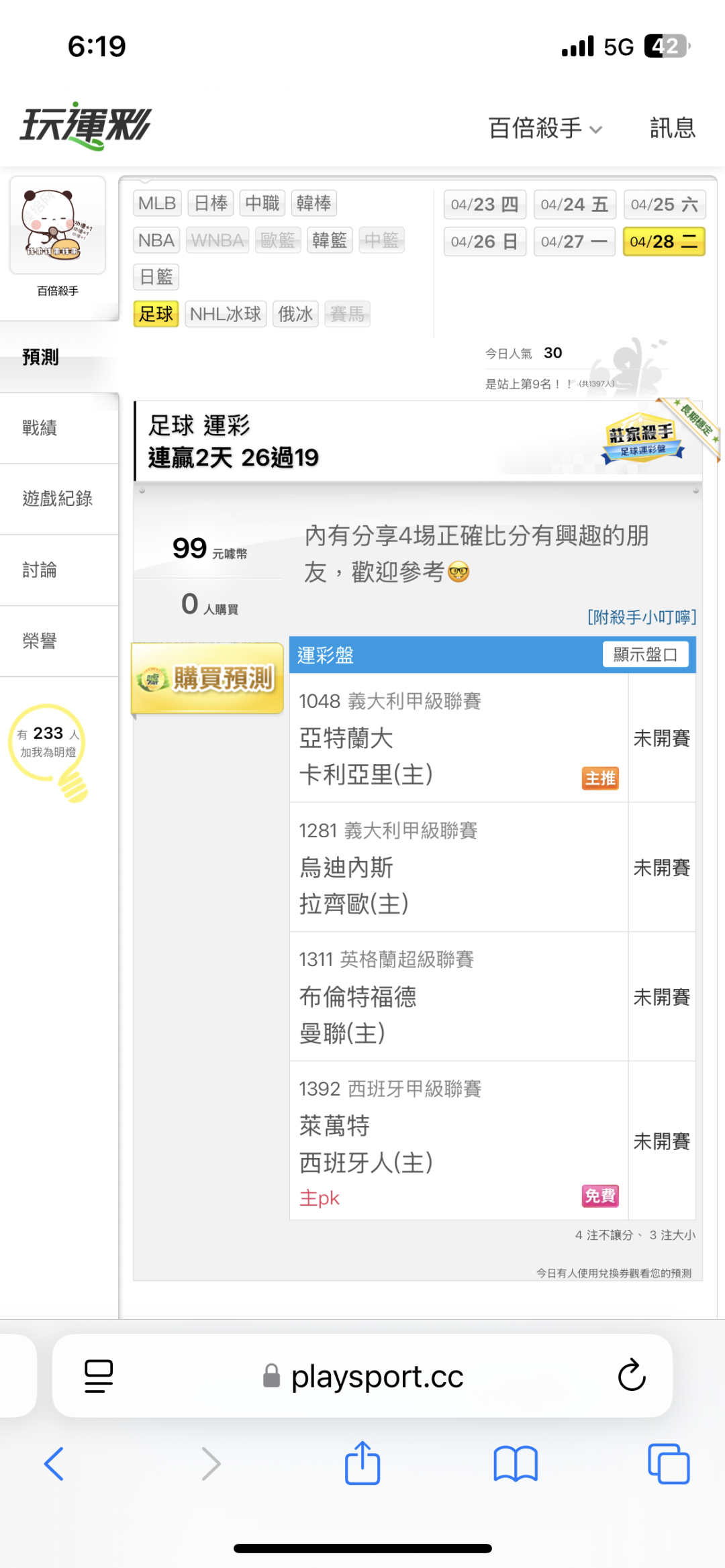 >> 4/28 內有分享4埸正確比分有興趣的朋友,歡迎參考🤓昨晚命中一埸比分
