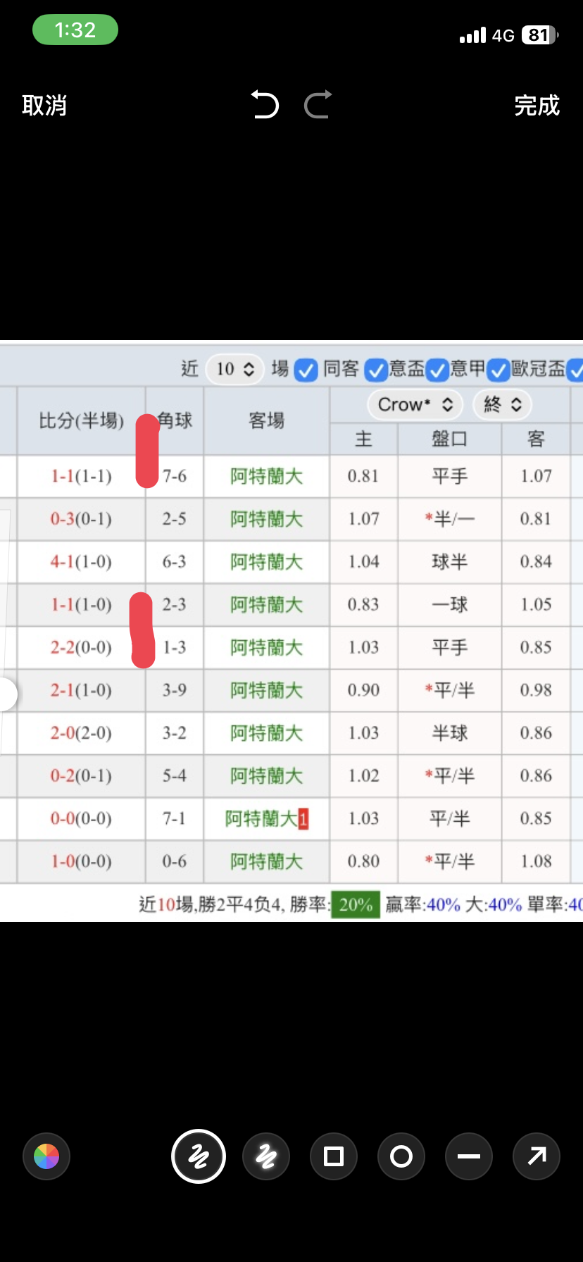 足球 >> 亞特蘭大場中 3.5 4.5大!感覺要6+??