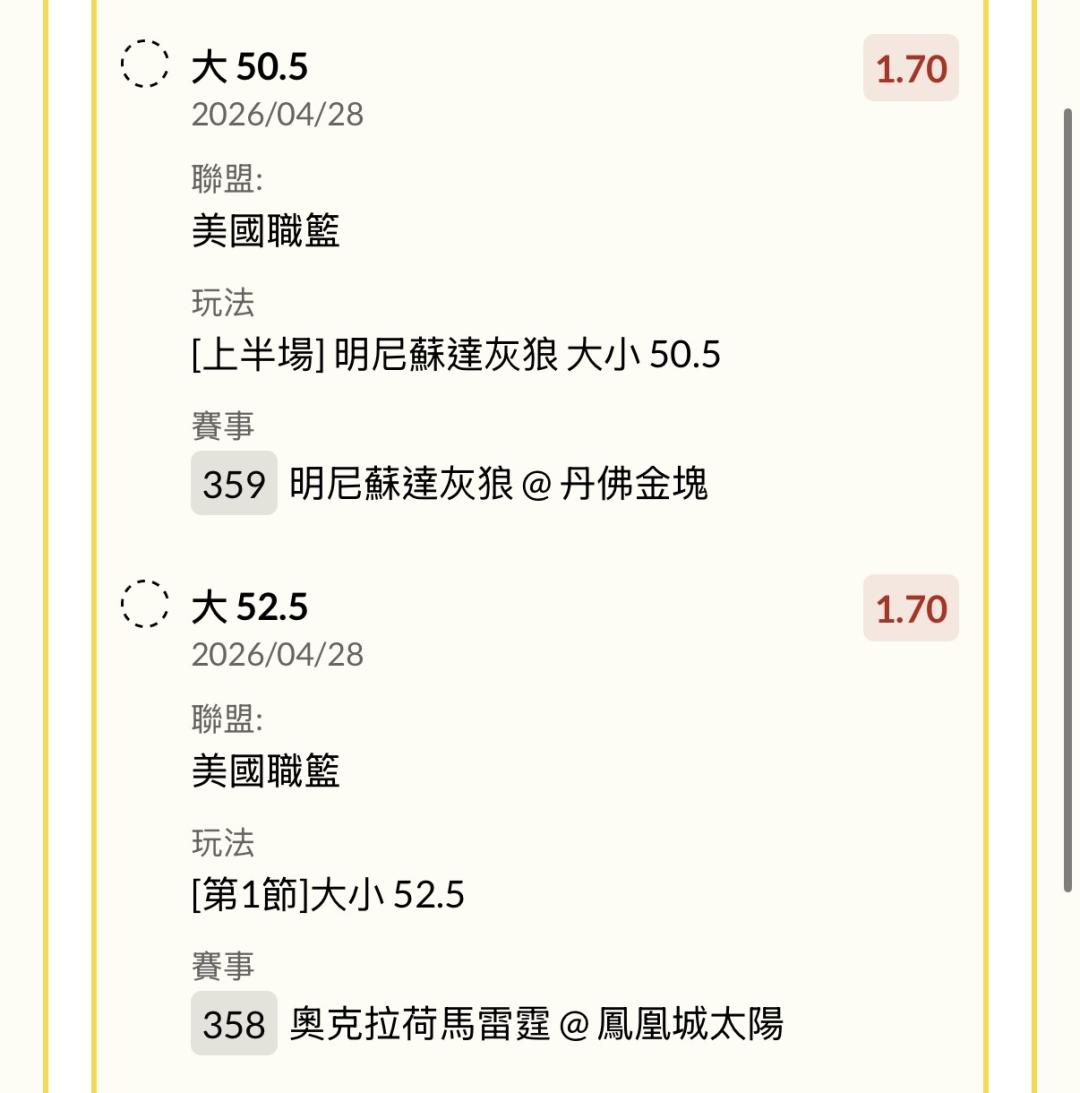 | 運彩盤賽事 |