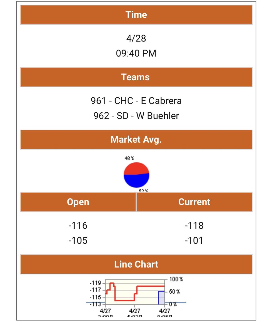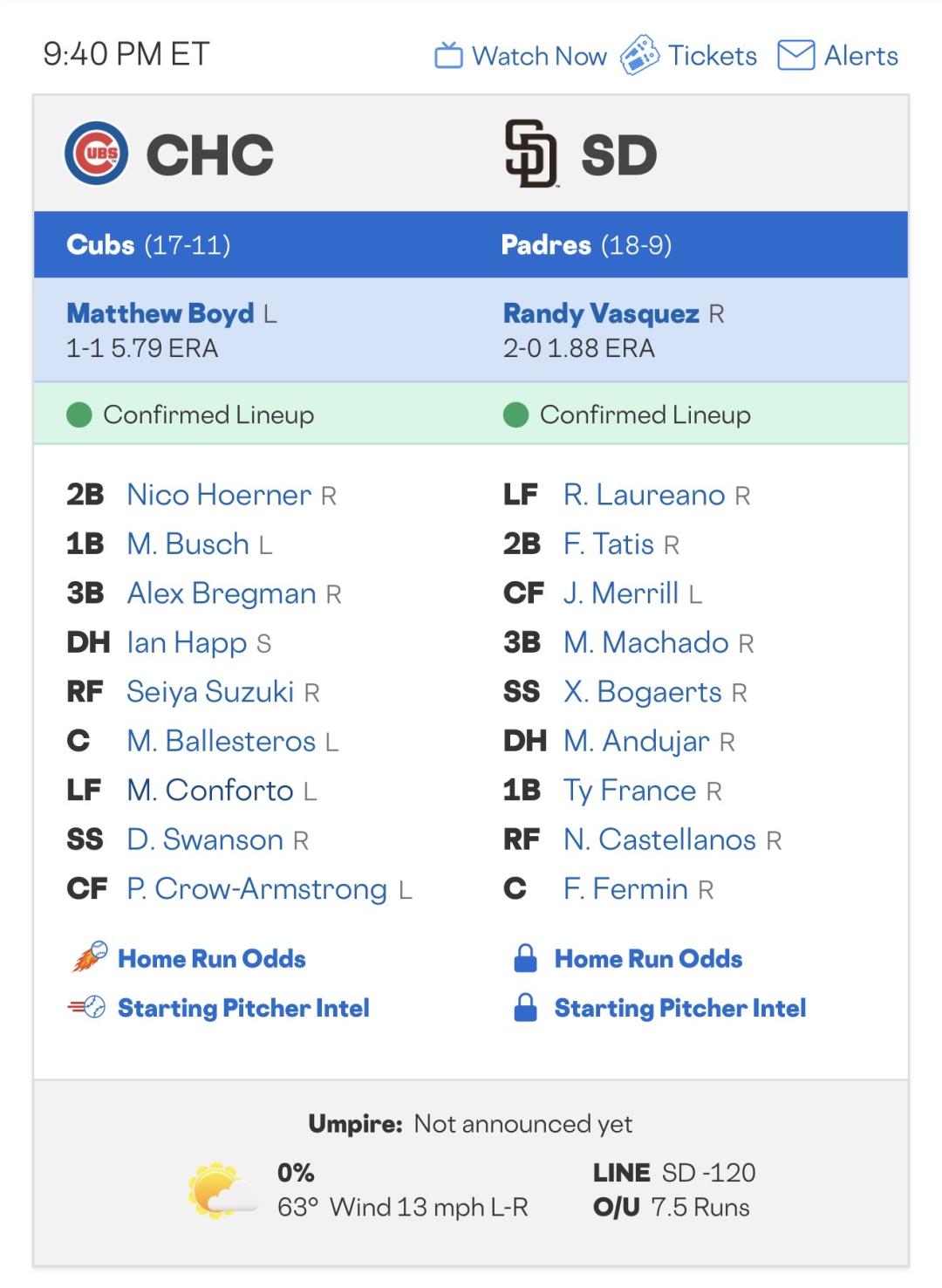 >> 單場 - 芝加哥小熊 VS 聖地牙哥教士「資金比例+先發名單」