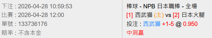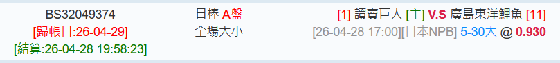 日本職棒 >> 4/28【星期日1過1】初盤分享+星期二受讓版路推薦!