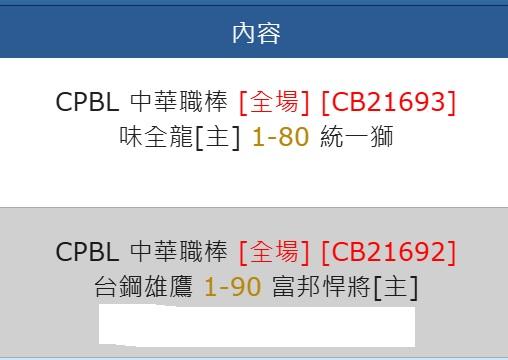 中華職棒 >> [主推 近期 17過13]-[味全VS統一]+[富邦VS台鋼]-有信心 拚全過