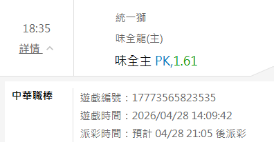 中華職棒 >> 4/28 CPBL推薦【運彩主推信心度高】【小叮嚀有注數推薦】【免費場歡迎參考】