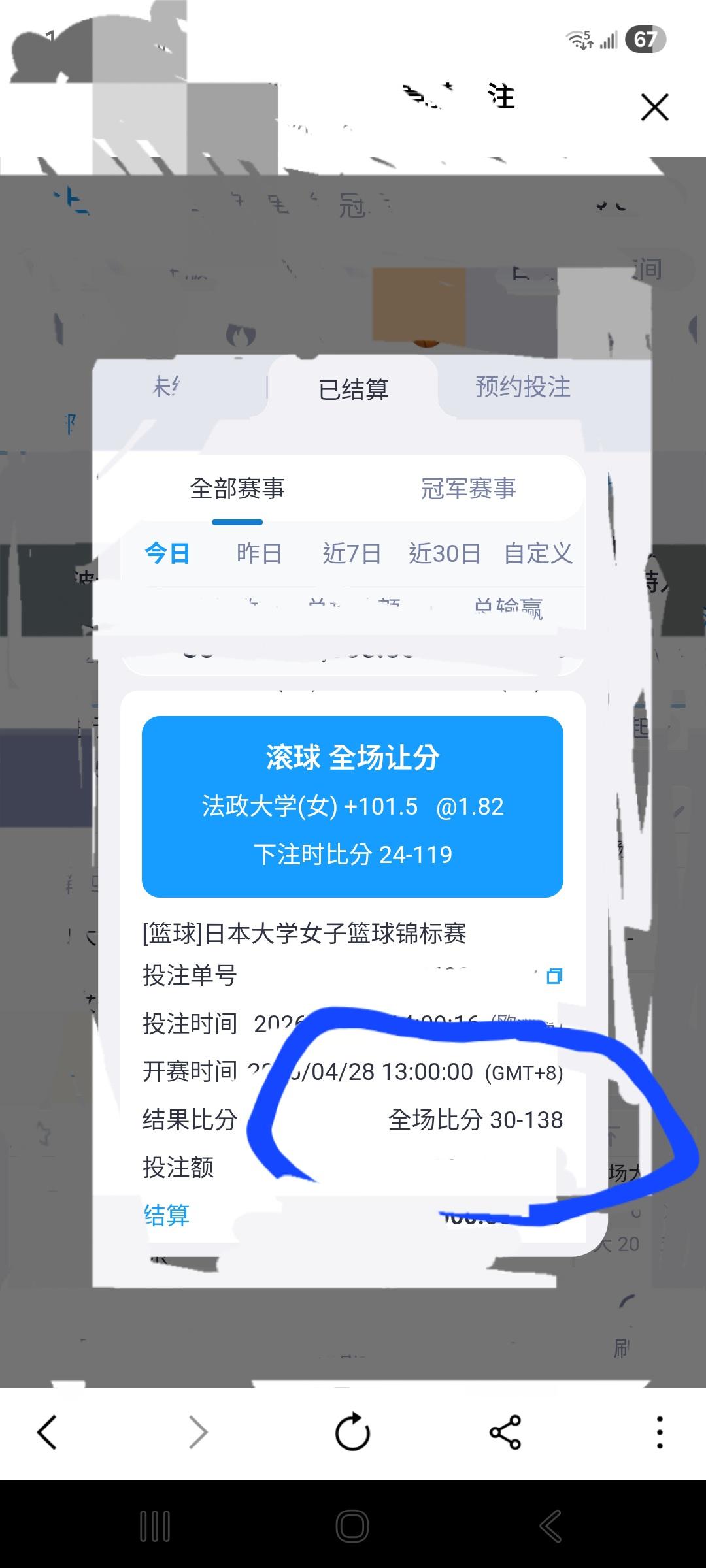 日本職籃 >> 玩走地看比賽分數最後30:131 等待理賠30分鐘後,分數改成30:138