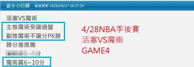 NBA >> 4/29NBA運彩主推連過7天國際讓分連贏2天7過5 今天魔術PK+贏6分&金塊讓分+贏12分都過