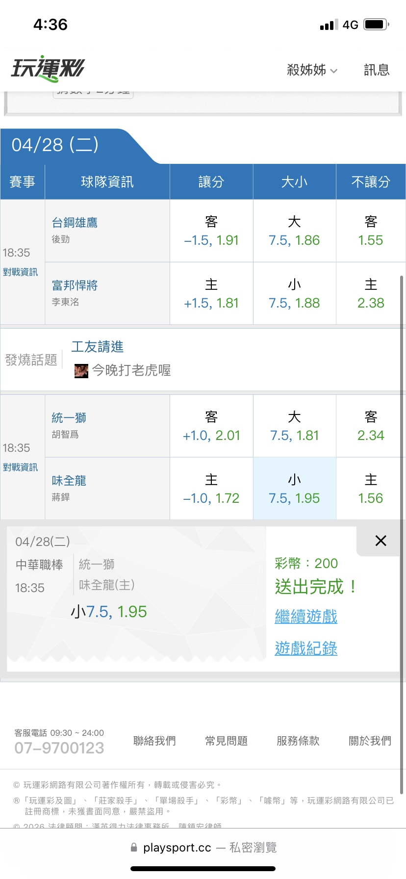 >> 中職分享(運彩近4日5過4)