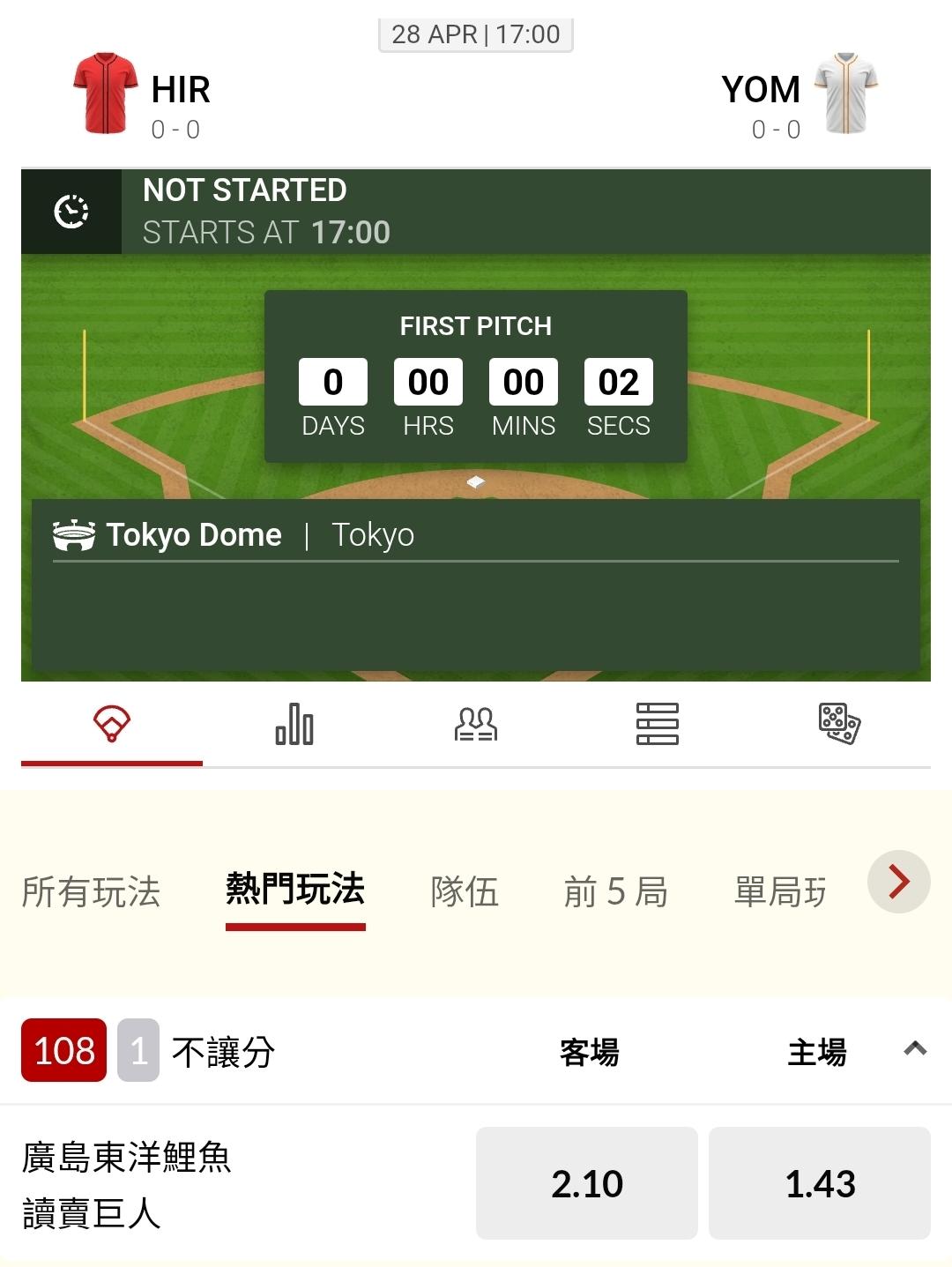 日本職棒 >> 孬剛單場開賽前30秒降水!