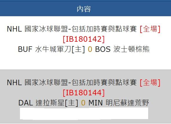 NHL冰球 >> [主推 4連勝]-[主推 台彩單場 軍刀VS棕熊]+[星辰VS荒野]-有信心 拚主推 5連勝