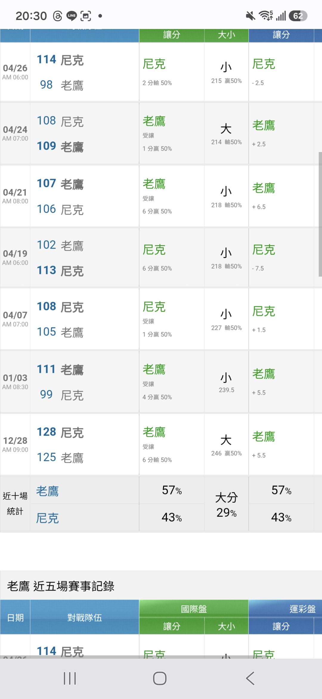 只要老鷹贏兩場接著就尼克贏兩場輪流所以明天尼克會贏過盤機率高加上主場優勢 |