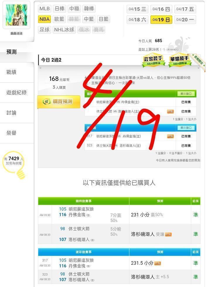 NBA >> ⭐⭐國際近10日13過10,明日主推台彩單場老鷹VS尼克,信心主推99%貓場50倍注,一次綠回來