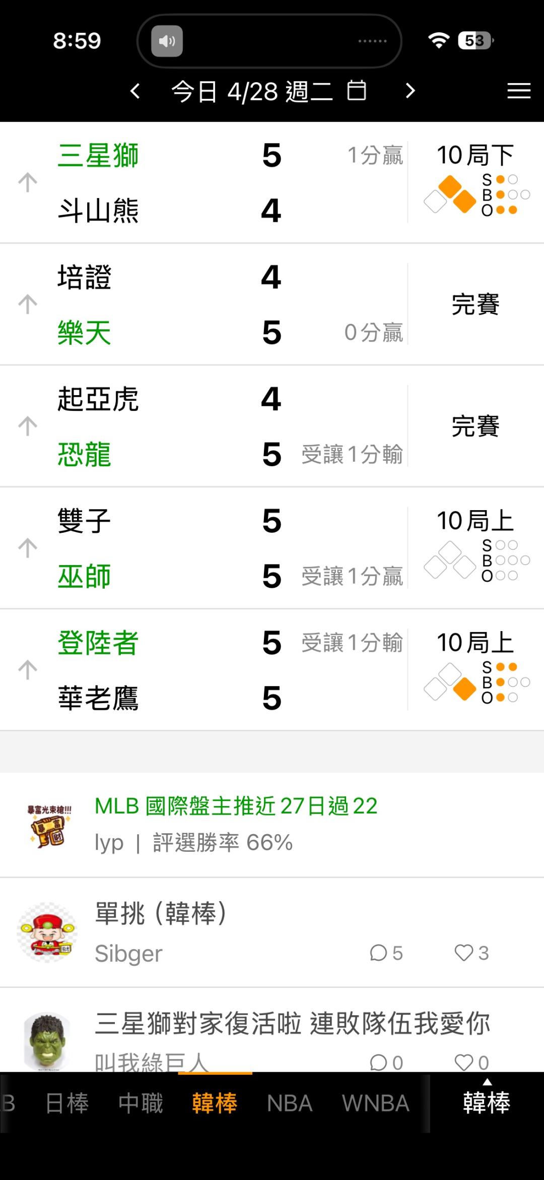 韓國職棒 >> 這什麼詭異分數每場都一樣今天全下受讓穩賺欸