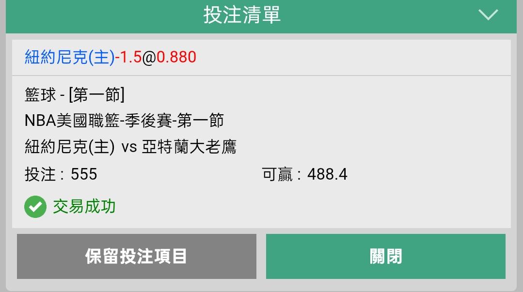看好第一節-1.5拿下!