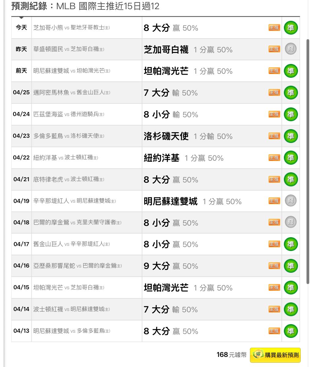MLB >> 主推又贏啦! 國際主推近🔥15日過12🔥 今天一樣有高信心場次