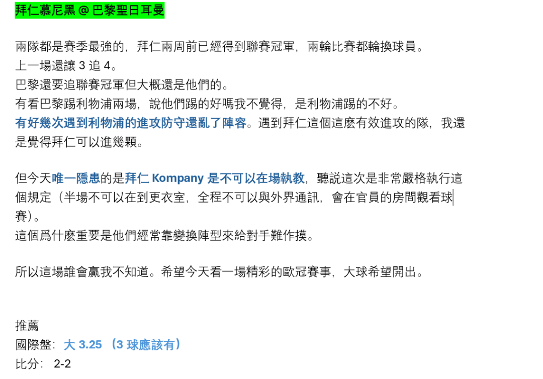 足球 >> 【MOFU足球預測】欧冠半决赛 - 拜仁慕尼黑 @ 巴黎聖日耳曼
