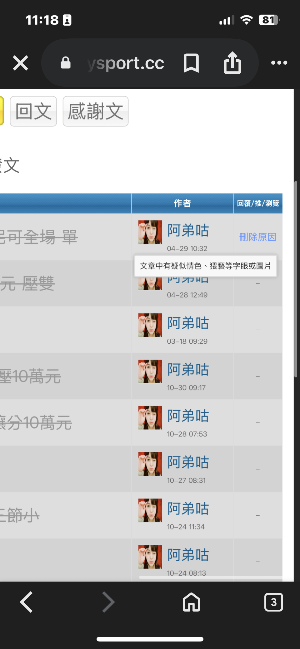 問題我就沒有Po什麼猥褻的照片和字眼阿