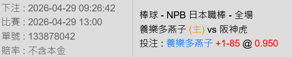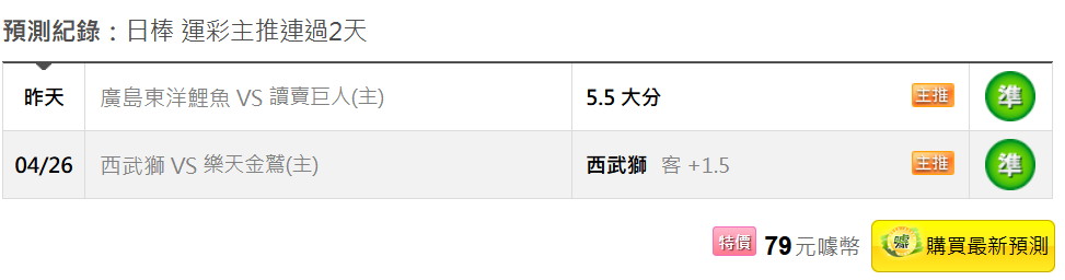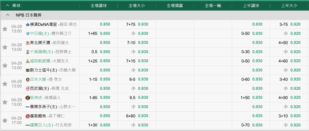 日本職棒 >> 4/29【國際連贏2天2過2】【台彩單場過關】初盤分享+星期三受讓版路推薦!