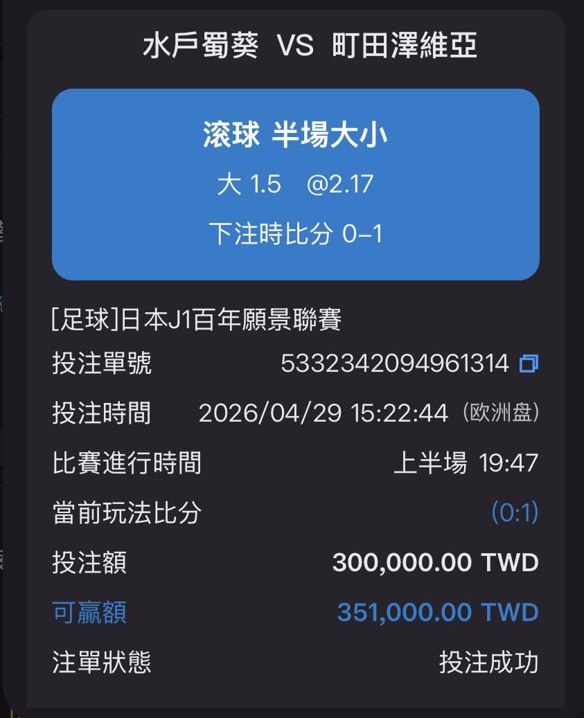 足球 >> 挑戰正獲利Day 13,撞豬頭(+87注)