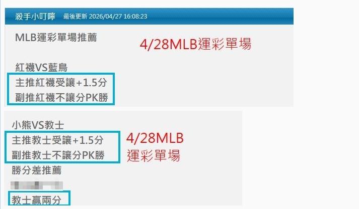 MLB >> 4/30MLB昨天小叮嚀推薦2場單場:紅襪受讓+PK&教士受讓+PK+贏2分勝分差都過 明2場單場