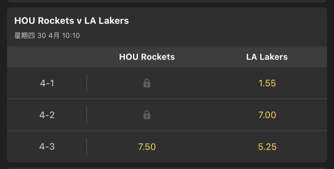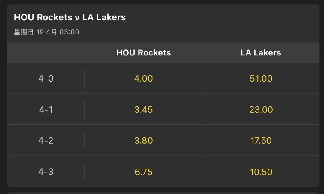 對阿,湖人那邊的賠率都偏高,但是現在湖人3:1,如果最後真的被🚀4:3了,不會覺得真的很假嗎,前面幾戰🚀爛的跟💩一樣