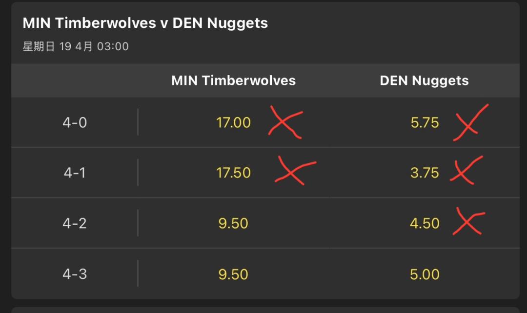 很難說,灰狼聽牌,但是大比分的賠率看好金塊😅