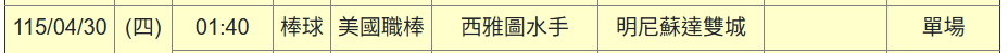 MLB >> 4/30【國際 主推近5過4】【台彩單場】美國星期三受讓版路推薦!