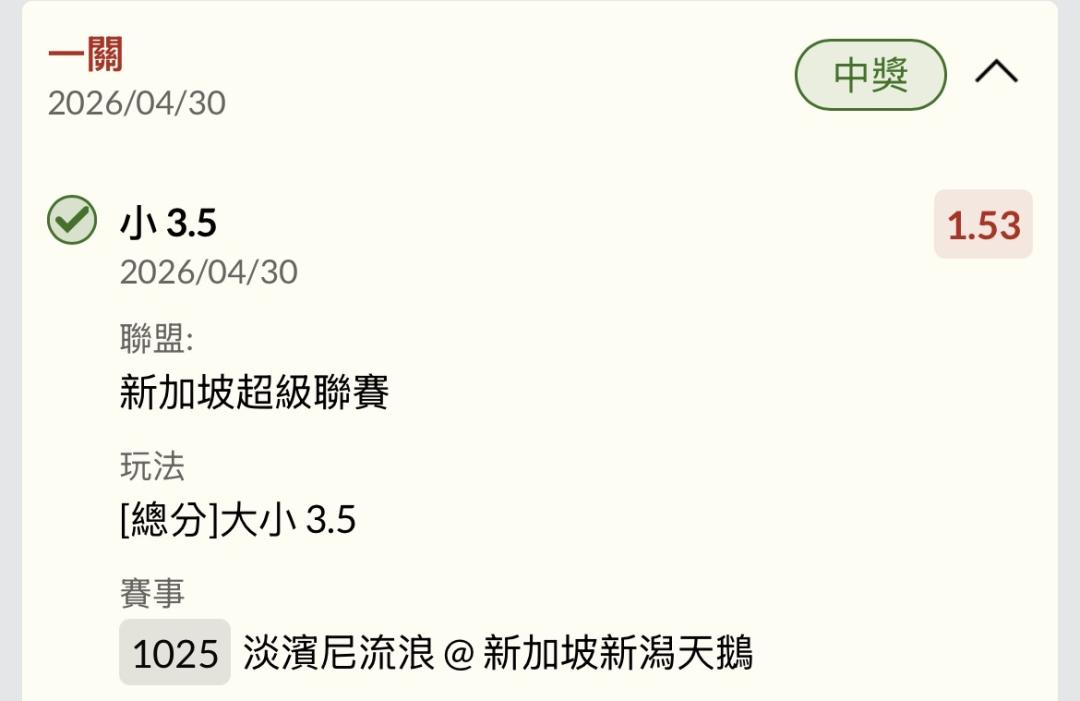 >> 4/30~🇸🇬新加坡聯賽⚽ 淡濱尼流浪 VS 新加坡新潟天鵝
