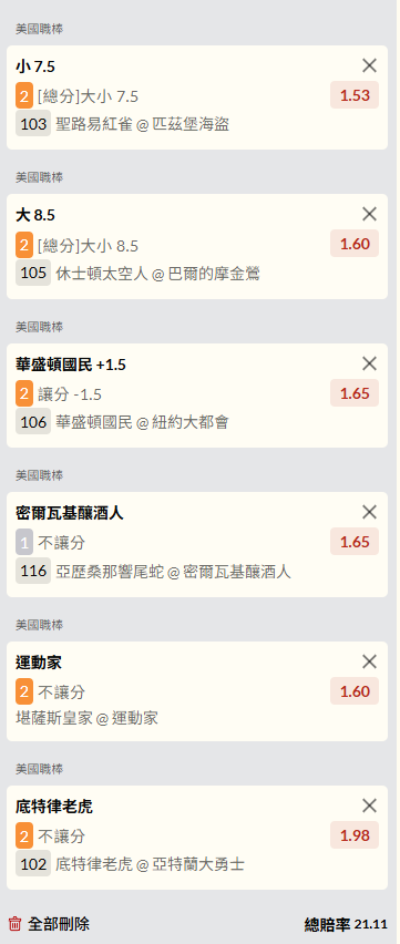 MLB >> 5/1 主推2場+另6場串關